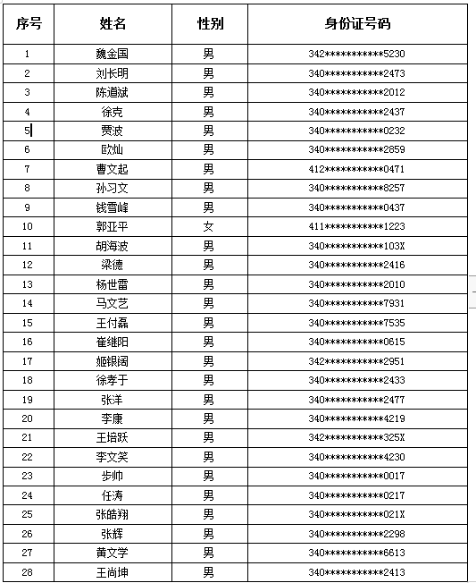 人列為考察人選,現(xiàn)將考察人選名單公布如下: