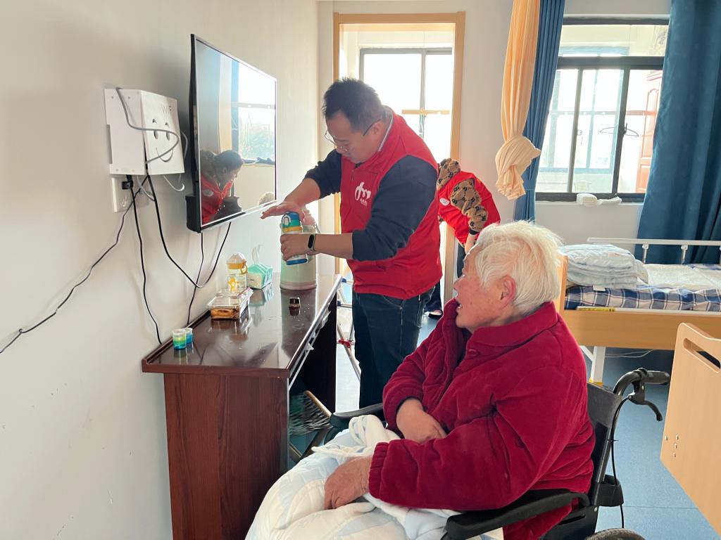 “老人家,您有哪里不舒服的嗎?我幫您檢查一下!”該公司黨員團員志愿者身著紅馬甲,仔細詢問在院老人身體健康狀況,并為他們量血壓,宣傳衛生保健知識,給予飲食、用藥方面意見建議,叮囑老人平時注意飲食清淡。