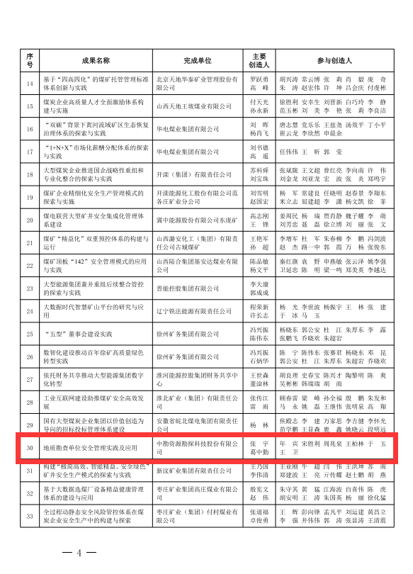 開展管理創新是集團公司深化企業內部管理的重要舉措,也是總結和推廣集團先進的管理思想、管理模式、管理制度、管理機制和方法的重要手段。據統計,截至目前,集團公司在“黨建引領、精益管控、數字化提升和技術創新”等方面共形成20余項成果,其中8項成果先后獲得全國煤炭企業管理現代化創新成果獎、國企管理創新成果獎。(高明山)