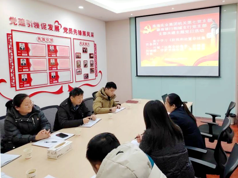 2月20日,集團公司機關第七黨支部聯合徽商銀行相城支行黨支部開展共建活動,共同學習《防范和處置非法集資條例》,并深入社區、企業、街道等場所,發放宣傳手冊,認真介紹非法集資基本特征、嚴重危害、表現形式、常見手段等,詳細講解防范措施、金融知識等內容,提醒市民群眾樹立正確投資理念,謹防上當受騙。